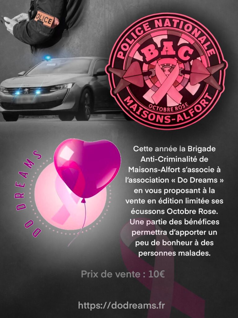 ​Pour Octobre Rose, la brigade anti-criminalité de Maisons-Alfort a créé un écusson en PVC en édition très limitée en partenariat avec l’association dodreams.fr.