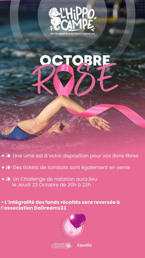 Nous sommes ravis de vous présenter notre partenaire exceptionnel pour Octobre Rose : le Centre Aquatique L’Hippocampe du Grand Cubzaguais !